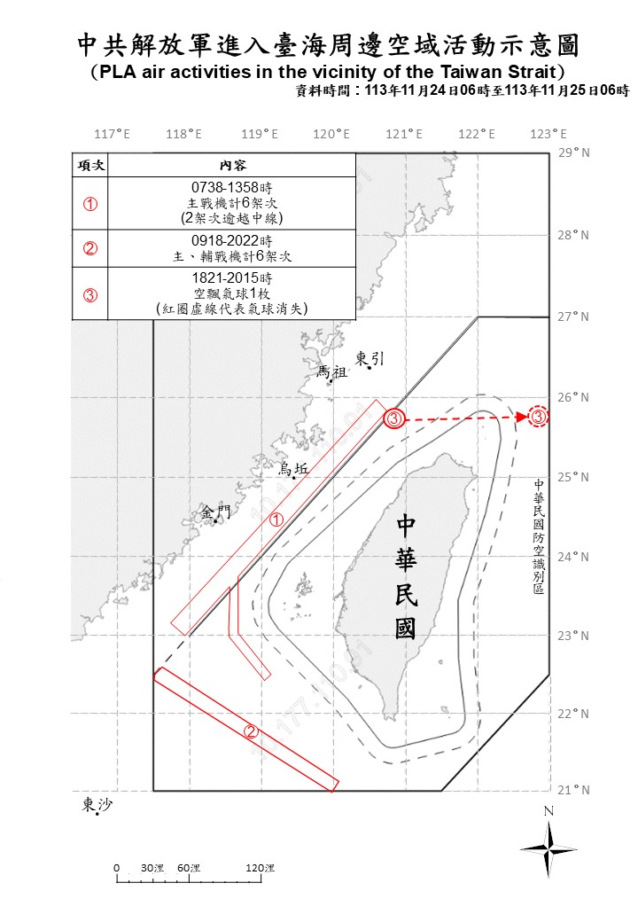 1131125_臺海周邊海、空域活動示意圖