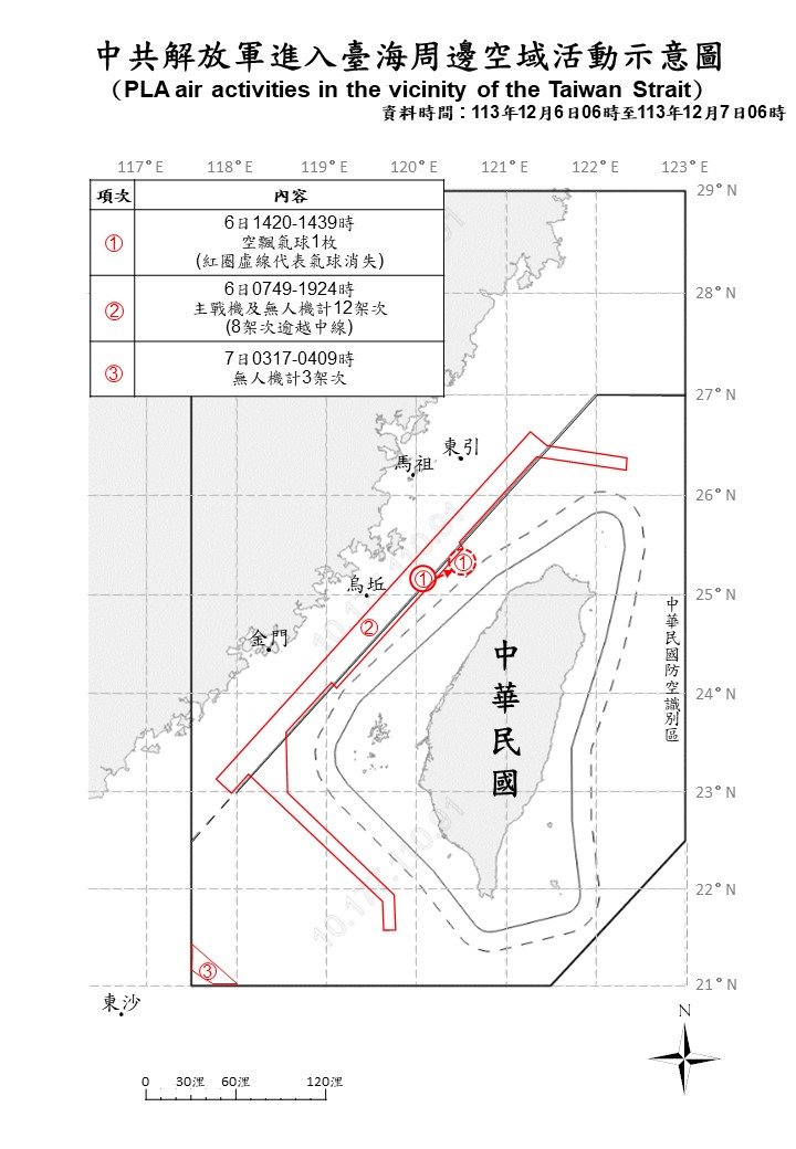 1131207_臺海周邊海、空域活動示意圖