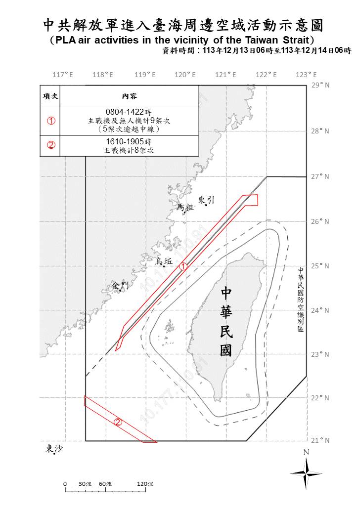 1131214_臺海周邊海、空域活動示意圖