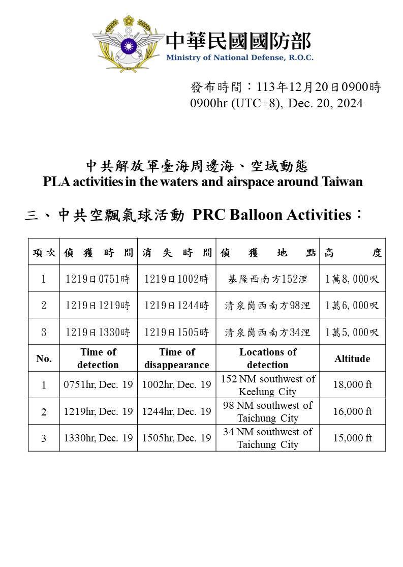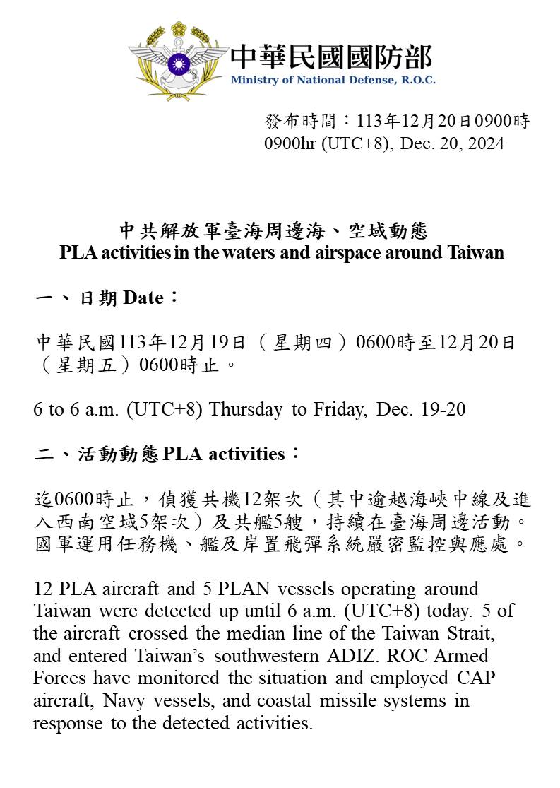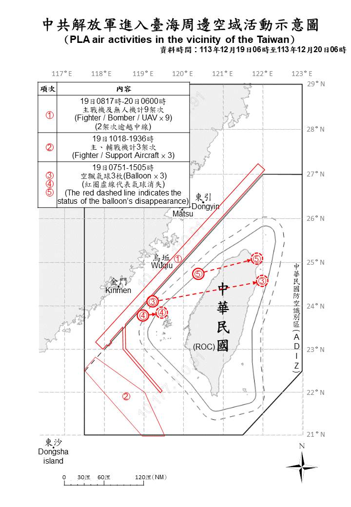 1131220_臺海周邊海、空域活動示意圖