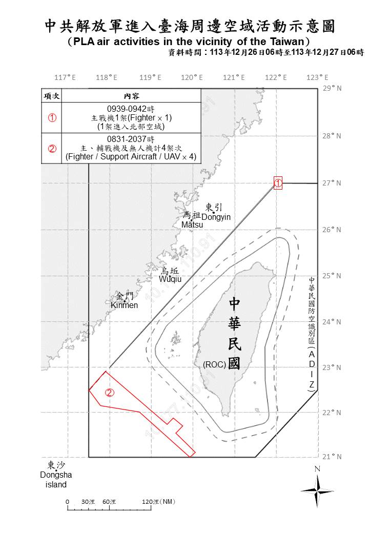 1131227_臺海周邊海、空域活動示意圖