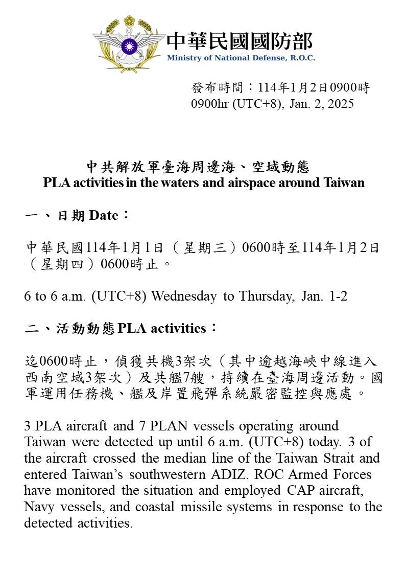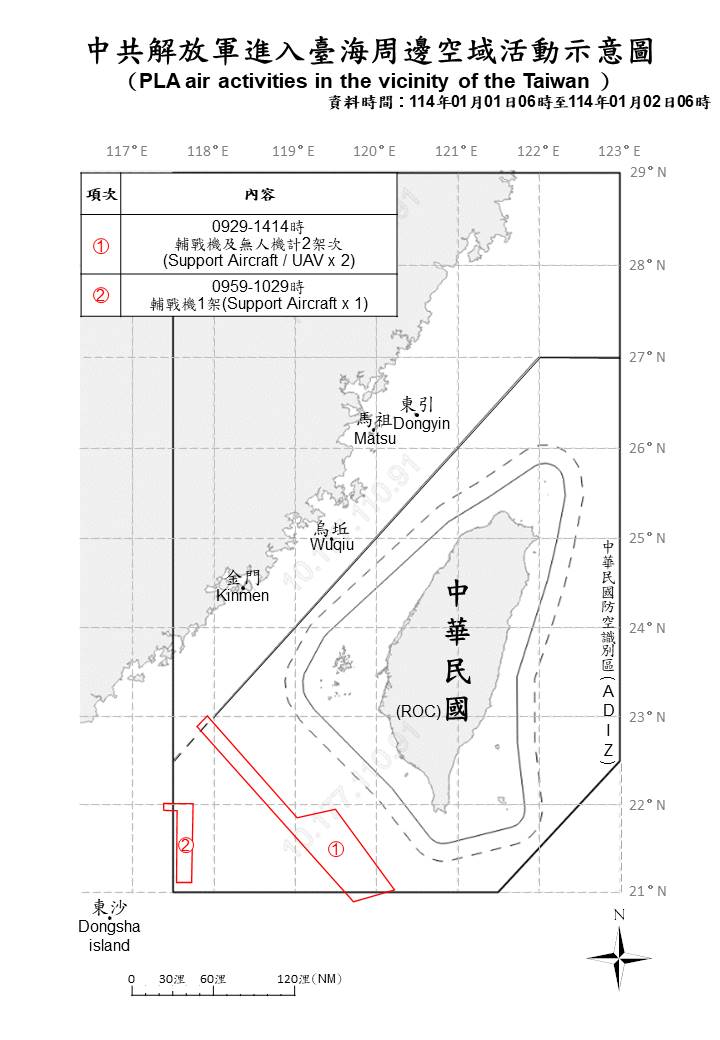 1140102_臺海周邊海、空域活動示意圖