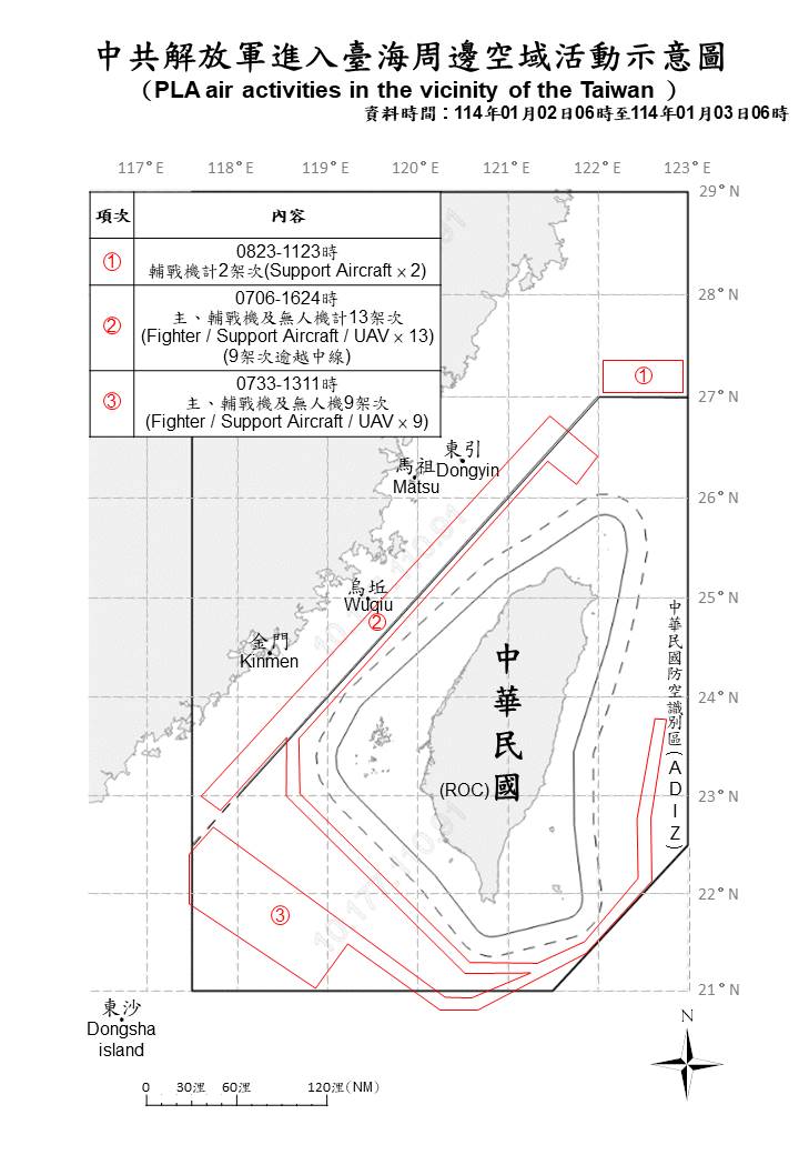 1140103_臺海周邊海、空域活動示意圖