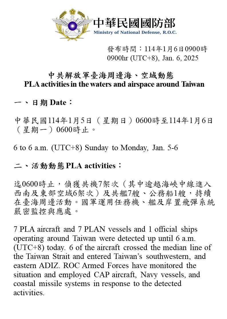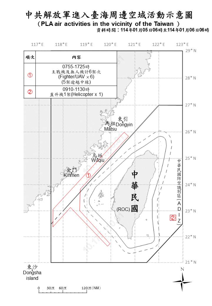 1140106_臺海周邊海、空域活動示意圖