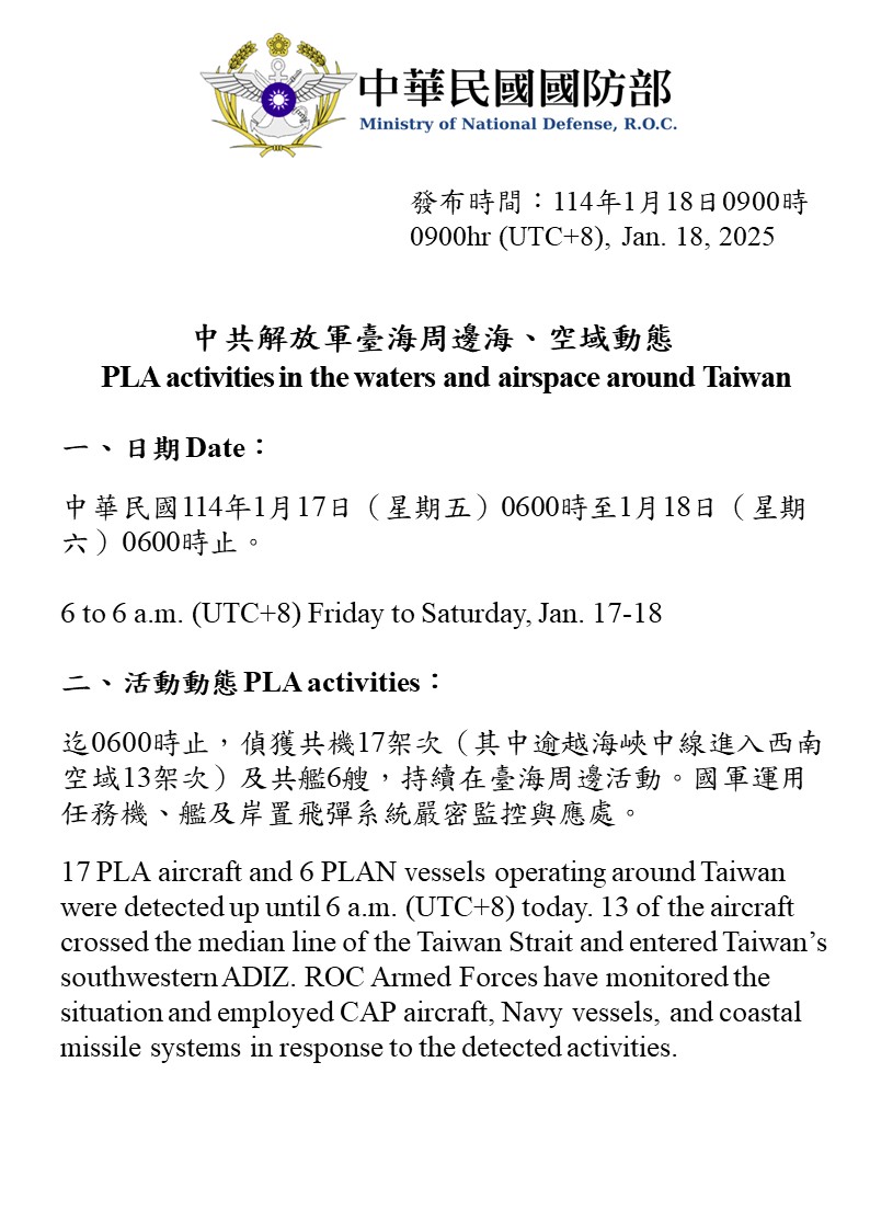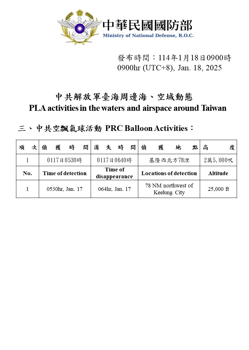 1140118_臺海周邊海、空域活動_1