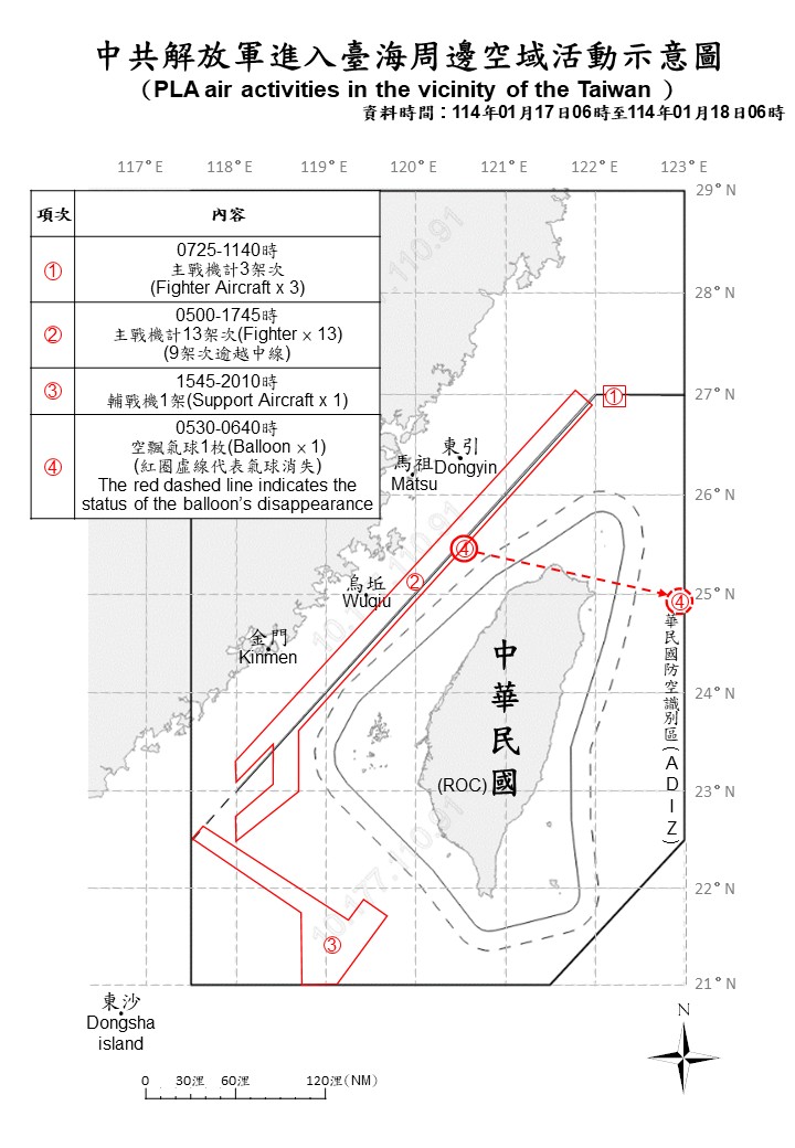 1140118_臺海周邊海、空域活動示意圖