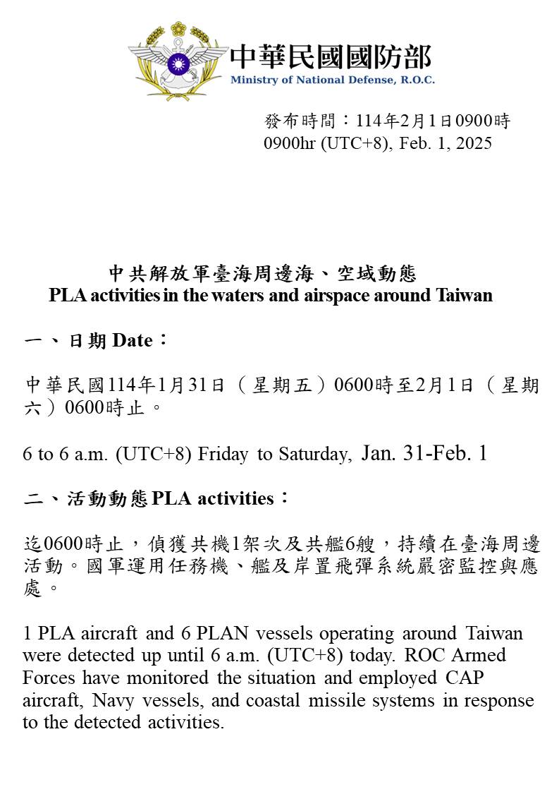 1140201_臺海周邊海、空域活動