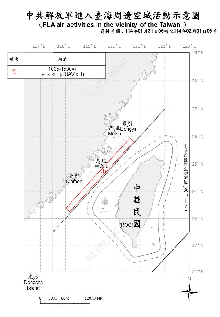 1140201_臺海周邊海、空域活動示意圖