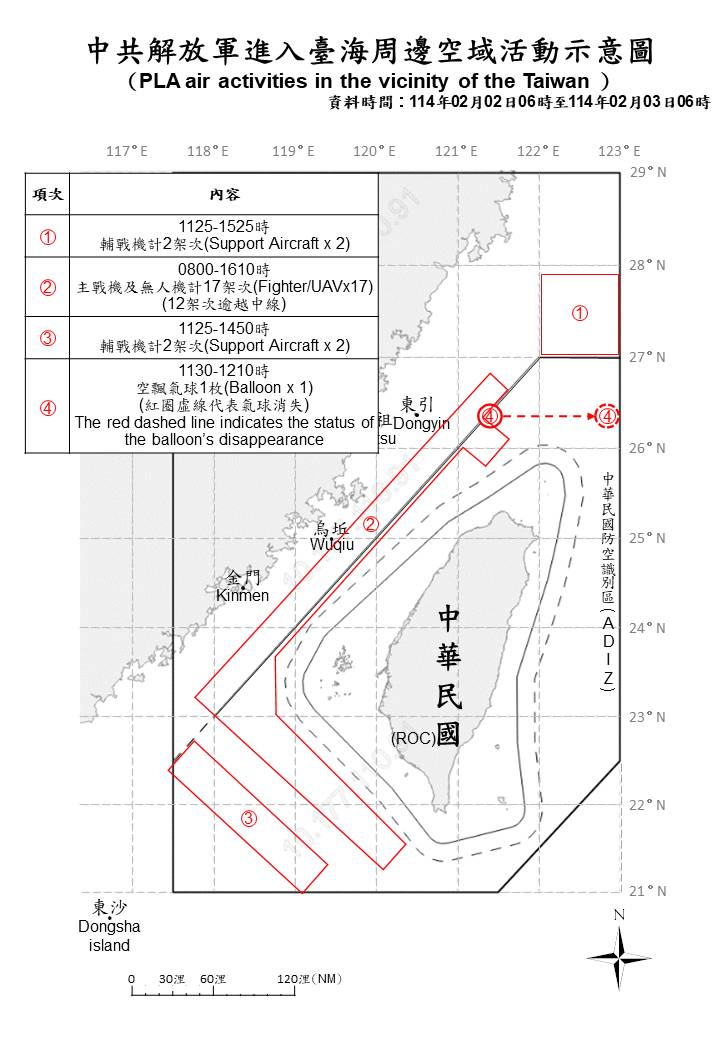 1140203_臺海周邊海、空域活動示意圖