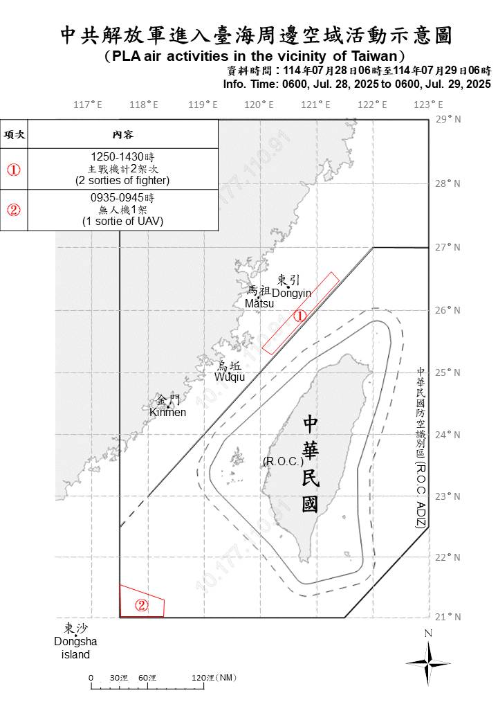 中華民國114年7月28日(星期一)0600時至7月29日(星期二)0600時止。