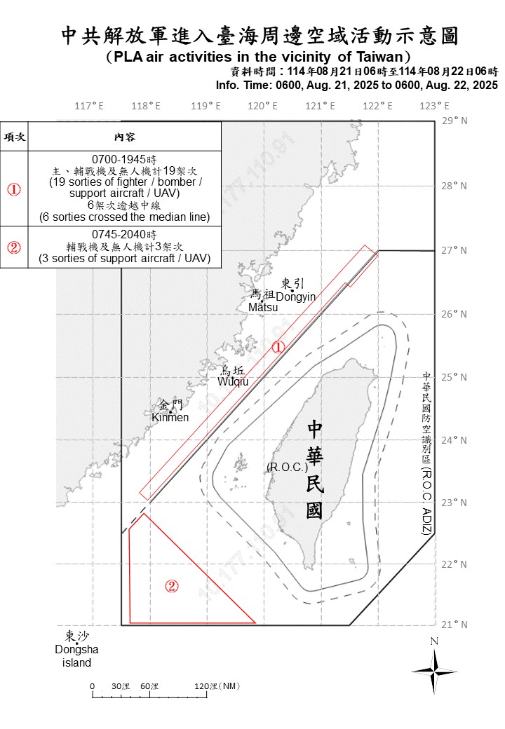 迄0600時止,偵獲共機22架次(其中逾越海峽中線進入北部及西南空域9架次)及共艦5艘,持續在臺海周邊活動。國軍運用任務機、艦及岸置飛彈系統嚴密監控與應處。