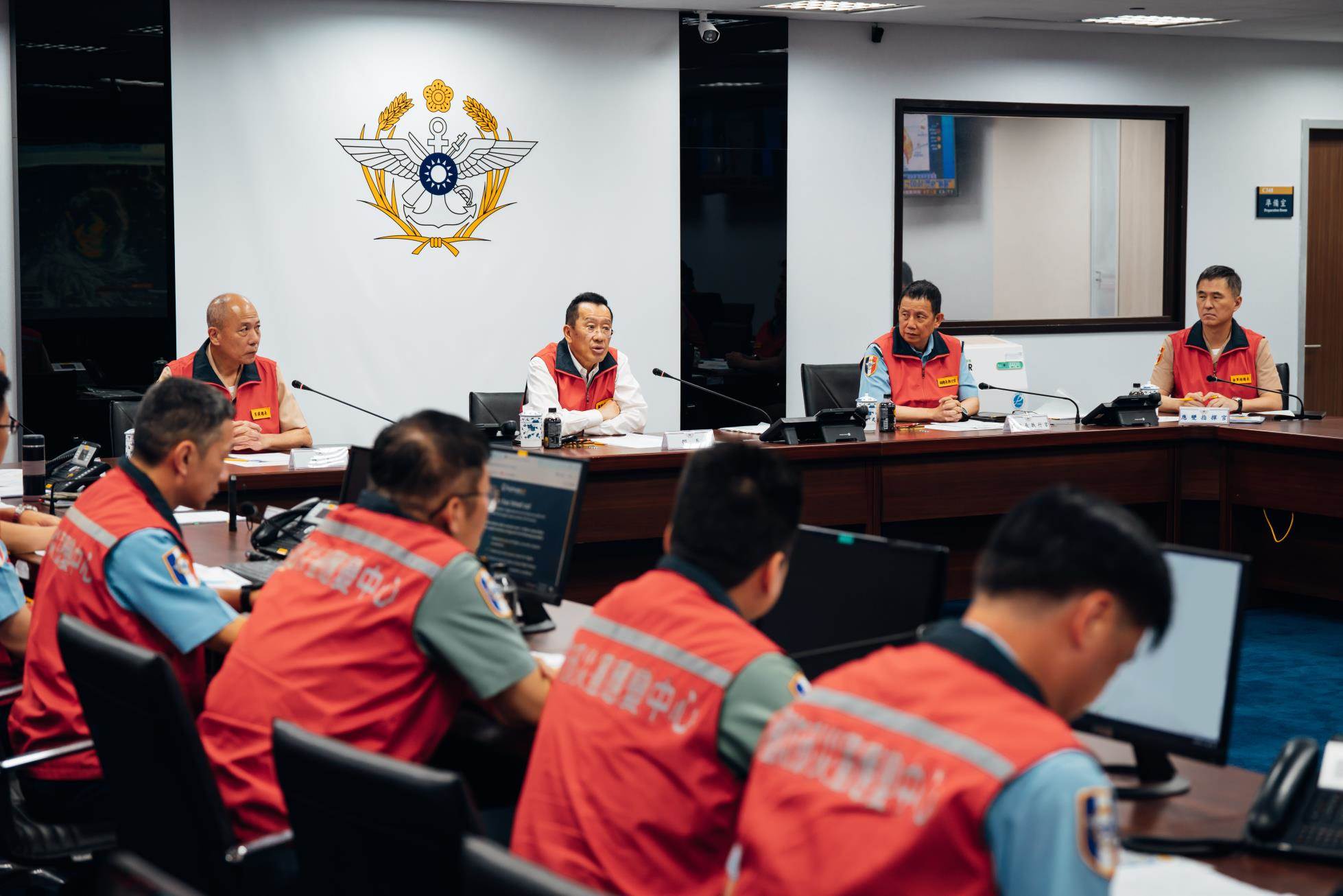 顧部長主持災防應變中心管制會議 嘉勉官兵主動投入防救災